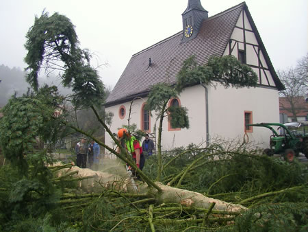 | Die Tanne vor der Kapelle wurde gefällt | |