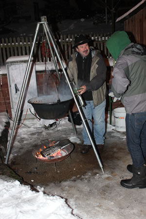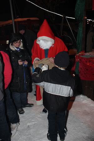 Am Dorfplatz war’s gemütlich – Der Nikolaus kam zum Weihnachtsmarkt in Darsberg Neckarsteinach-Darsberg. (fi) Auch wenn die Schneeflocken vom Wind durch den Ort gepeitscht werden – die Darsberger kommen auf den Dorfplatz. Umso eifriger, als recht idyllisch die Häuschen zum Weihnachtsmarkt aufgebaut waren, über dem offenen Feuer das Gulasch brodelte oder die Kartoffelpuffer dampfend aus dem Fett genommen wurden. Ralf Edelmann als Vorsteher des Ortsbeirates konnte im zehnten Jahr den Darsberger Weihnachtsmarkt ausrufen: „Was bescheiden begann, hat sich inzwischen fest etabliert.“ Es gab auch die sichtbaren Zeichen der Freude. Der stattliche Weihnachtsbaum aus dem Darsberger Forst war mit bunten Päckchen geschmückt. Musikalisch wurde der Markt vom Chor der Neuapostolischen Kirchengemeinde Darsberg unter der Leitung von Andrea Friedel eröffnet, ganz förmlich von Maike I., der amtierenden Vierburgenkönigin, und dem Burgfräulein Sabrina I.. Die Vierburgenkönigin begrüßte alle, die den Weg auf den Dorfplatz und zum Weihnachtsmarkt gefunden hatten, unter denen fand sich natürlich auch Bürgermeister Herold Pfeifer. Nach dem Nikolaus, der hier Zwischenstation machte, zog es die warm eingepackten Besucher in die geheizte Kapelle. Die Gruppe „Effata“ stimmte hier die Gäste mit Lyrik und Musik auf die anstehenden Festtage ein. Aufgewärmt und mit gebackenen Waffeln der Konfirmanden erneut gestärkt, war es danach am verschneiten Dorfplatz noch so richtig gemütlich. Roland Fink (Veröffentlicht in der Rhein-Neckar-Zeitung, Jahrgang 68, Ausgabe 295 vom 20. Dezember 2012) |