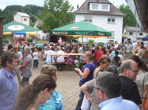 Wie immer in Darsberg war auch für das leibliche Wohl wieder bestens gesorgt. Ob Darsberger Braten, Salatteller oder Hausmacher Wurst, für jeden war etwas geboten. Und alles fand bis auf die letzte Portion reißenden Absatz. Mehr kann man sich als Veranstalter nicht wünschen. Auch das Kuchenbuffet mit über dreißig selbstgebackene Kuchen – und einer schöner als der andere – ließ keine Wünsche offen. Aber ohne die Mithilfe vieler fleißiger Hände und die Unterstützung einer intakten Dorfgemeinschaft wäre eine Veranstaltung wie das Darsberger Dorffest undenkbar. Dank gebührt daher an erster Stelle allen Helfern vor und hinter den Kulissen für das ehrenamtlich unter Beweis gestellte Engagement. Auch allen Kuchenspendern sowie Spendern für die Tombola sei herzlichst gedankt. Bedanken möchten wir uns auch beim EDEKA Markt Arlt für die kostenlose Überlassung des Kühlanhängers sowie bei Peter Seib für die Spende der Hausmacher Wurst. Dank gebührt auch Herrn Ritter für seine Verbundenheit mit Darsberg sowie der Stadt Neckarsteinach für die Unterstützung im Rahmen der Festvorbereitung. Auch das im September 2008 neu eingeweihte Dorfgemeinschaftshaus hat seine erste Bewährungsprobe auf vortreffliche Weise bestanden. Festzuhalten bleibt: Des Darsberger Dorffescht 2010 war net nur e scheenes, sondern e werklich scheenes Fescht! Mögen noch viele solcher Ereignisse folgen. Der überaus große Zuspruch wird die Interessengemeinschaft Darsberg bei ihren weiteren Bemühungen zum Wohle der Dorfgemeinschaft sicherlich beflügeln. Für die IGD Ralf Edelmann