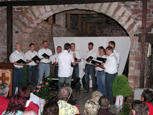 In diesem Jahr hieß der Auftakt „A Cappella“ - und dies im wahrsten Sinne des Wortes und ohne Übertreibung vom Feinsten! Jeder, der sich diesen Abend nicht entgehen lassen wollte, kam voll und ganz auf seine Kosten. Ein ausgewogenes Programm, dargeboten vom MGV Männerquartett 1904 Dielheim e.V., ließ keine Wünsche offen. Die hohe Musikalität der Darbietung und die allseits spürbare Freude am Gesang zog sich wie ein roter Faden durch das gesamte Konzert. Traditionelle a cappella Stücke im Wechsel mit Werken der moderneren Popliteratur ließ den Funken der Begeisterung überspringen und gestaltete den Abend für alle, Zuhörer wie Künstler, zu einem Musikgenuss der besonderen Art. Vielen Dank an die Männer von „A Cappella“ und ihren musikalischen Leiter Thorsten Gedak. Am besten läst sich die Atmosphäre damit beschreiben, dass der Abend für viele nicht hätte enden brauchen. So zog sich der gesellige Ausklang bei nicht wirklich sommerlichen Temperaturen noch bis nach Mitternacht hin. Viele freuen sich auf ein Wiederhören. Schade für alle, die sich dieses musikalische Erlebnis entgehen ließen.