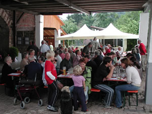 Zur Freude aller setzte sich das ruhige und milde Sommerwetter am Sonntag fort, so dass, zumindest aus witterungstechnischer Sicht, dem eigentlichen Darsberger Dorffest nichts mehr im Wege stand. Eröffnet wurde der Nachmittag mit einem gelungenen Liedbeitrag des MGV Heimatland Darsberg unter der Leitung von Simon Gramlich, sowie herzlichen Willkommensworten seitens des Ortsvorstehers Ralf Edelmann. Ein Kuchenbuffet der Extraklasse sowie traditionelle Darsberger Gerichte - von Hausmacher Wurst und Schinken über Handkäse bis zu Fischspezialitäten - sorgten für die notwendige Stärkung nach einer Wanderung oder einer vorangegangenen Radtour nach Darsberg.