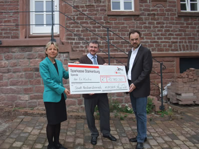 Was am Donnerstag, den 17. Juli 2008 seinen formellen Abschluss fand ist mehr, als die reine Übergabe eines Schecks in Höhe von Euro 12.782,30 zugunsten des Projektes Dorfgemeinschaftshaus Darsberg. Sondern Ausdruck einer langjährigen und vertrauensvollen Zusammenarbeit von Ortsbeirat und Evangelischer Kirchengemeinde Darsberg sowie einer tragfähigen Kooperation mit den Verantwortlichen der Stadt Neckarsteinach. Finanztechnisch korrekt formuliert handelt es sich hierbei um keine Spende, sondern als projektspezifische Quersubventionierung aus Dritt-Mitteln um eine partnerschaftliche Investition in die Zukunft. Zuschussgeber ist nicht die Evangelische Kirchengemeinde Darsberg selbst, sondern die Evangelische Landeskirche Hessen Nassau.