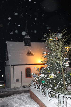 Am Dorfplatz war’s gemütlich – Der Nikolaus kam zum Weihnachtsmarkt in Darsberg Neckarsteinach-Darsberg. (fi) Auch wenn die Schneeflocken vom Wind durch den Ort gepeitscht werden – die Darsberger kommen auf den Dorfplatz. Umso eifriger, als recht idyllisch die Häuschen zum Weihnachtsmarkt aufgebaut waren, über dem offenen Feuer das Gulasch brodelte oder die Kartoffelpuffer dampfend aus dem Fett genommen wurden. Ralf Edelmann als Vorsteher des Ortsbeirates konnte im zehnten Jahr den Darsberger Weihnachtsmarkt ausrufen: „Was bescheiden begann, hat sich inzwischen fest etabliert.“ Es gab auch die sichtbaren Zeichen der Freude. Der stattliche Weihnachtsbaum aus dem Darsberger Forst war mit bunten Päckchen geschmückt. Musikalisch wurde der Markt vom Chor der Neuapostolischen Kirchengemeinde Darsberg unter der Leitung von Andrea Friedel eröffnet, ganz förmlich von Maike I., der amtierenden Vierburgenkönigin, und dem Burgfräulein Sabrina I.. Die Vierburgenkönigin begrüßte alle, die den Weg auf den Dorfplatz und zum Weihnachtsmarkt gefunden hatten, unter denen fand sich natürlich auch Bürgermeister Herold Pfeifer. Nach dem Nikolaus, der hier Zwischenstation machte, zog es die warm eingepackten Besucher in die geheizte Kapelle. Die Gruppe „Effata“ stimmte hier die Gäste mit Lyrik und Musik auf die anstehenden Festtage ein. Aufgewärmt und mit gebackenen Waffeln der Konfirmanden erneut gestärkt, war es danach am verschneiten Dorfplatz noch so richtig gemütlich. Roland Fink (Veröffentlicht in der Rhein-Neckar-Zeitung, Jahrgang 68, Ausgabe 295 vom 20. Dezember 2012) |